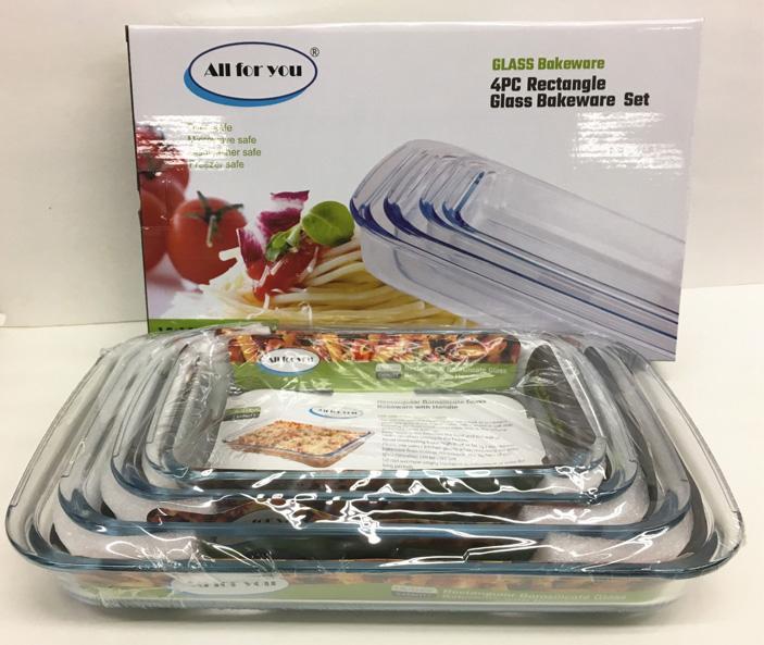 4PC Rectangular Borosilicate Glass Bakeware Set-1/1.6/2.2/3L/-3 SETS/CS