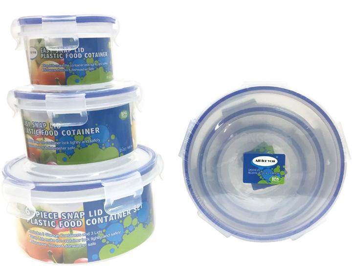 #9000, 6-Piece Round Plastic Food Container Set-1200ml/680ml/300ml