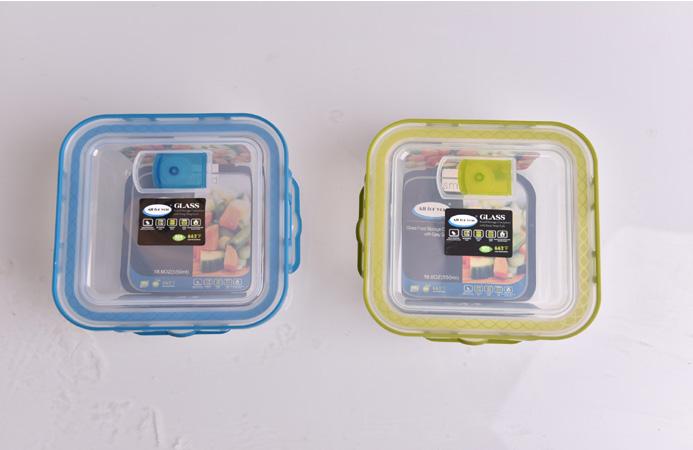 #9015, 550ml/18.79oz Square Glass Container with 2 Color Lid