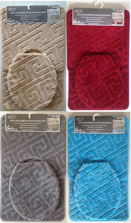Assorted color 3pc Solid Polypropylene Bath Mat-12set/cs