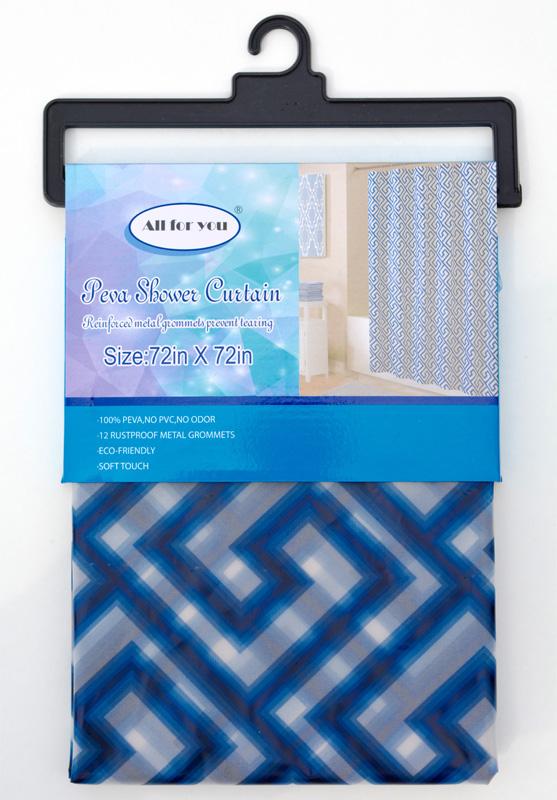 PEVA Shower Curtain with navy maze prints-12pcs/cs