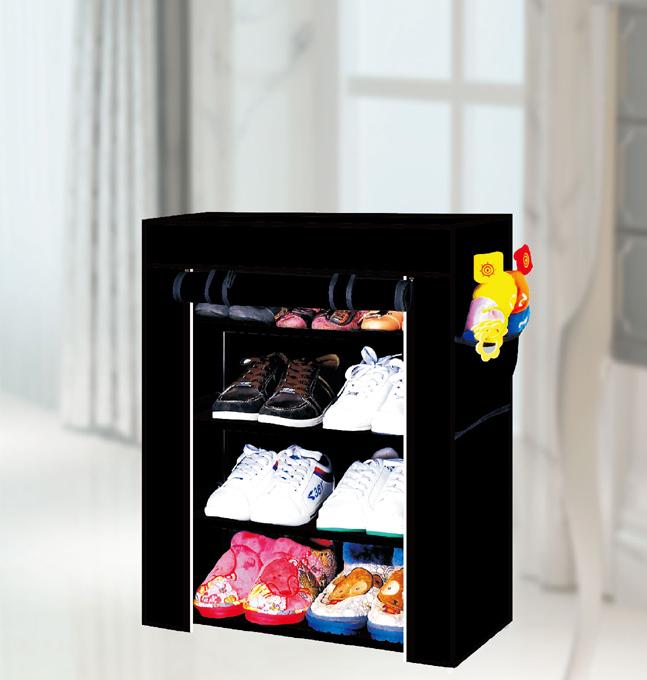 4-Tier Shoe Closet with Fabric Cover-Black Color-23.6"LX11.8"WX28.34"H-6 pcs/cs