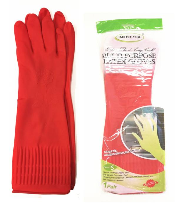 Extra Thick Long Cuff Multipurpose Latex Gloves-S Size-48 PCS/CS