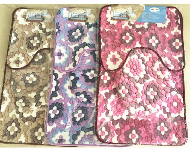 3-Piece Bathroom Rug Set with Engraved Flower-assorted color